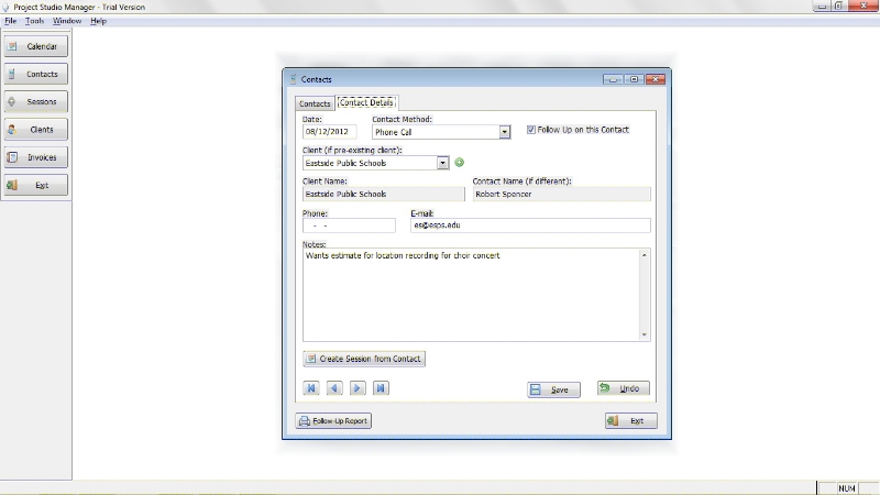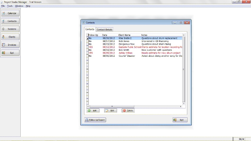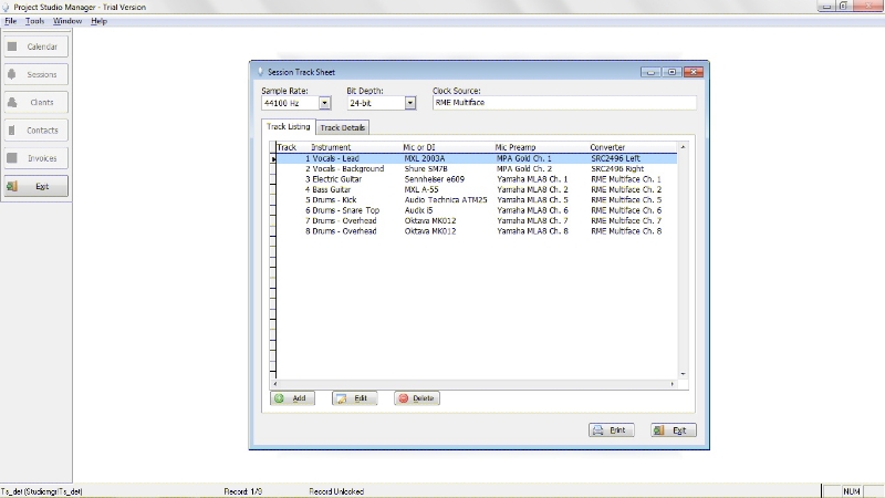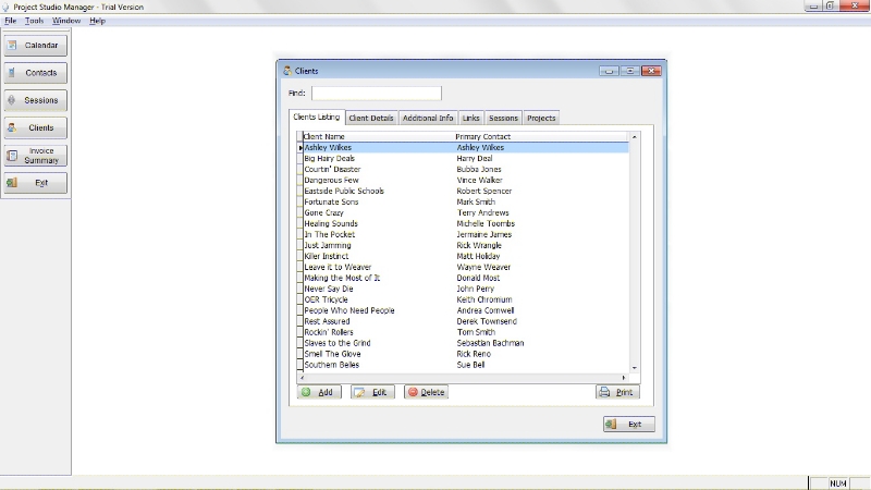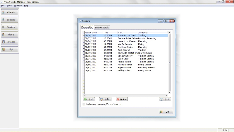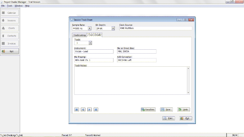 The following are some screen shots to give you an idea of how Project Studio Manager looks and works.