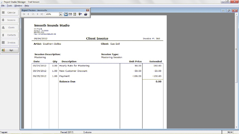 Previewing an Invoice
